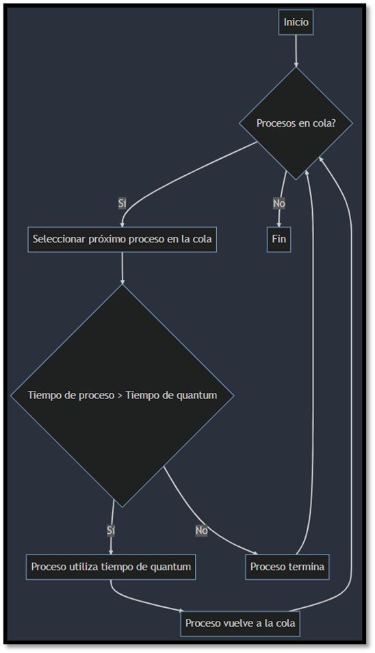Diagrama de flujo del funcionamiento del algoritmo Round Robin: